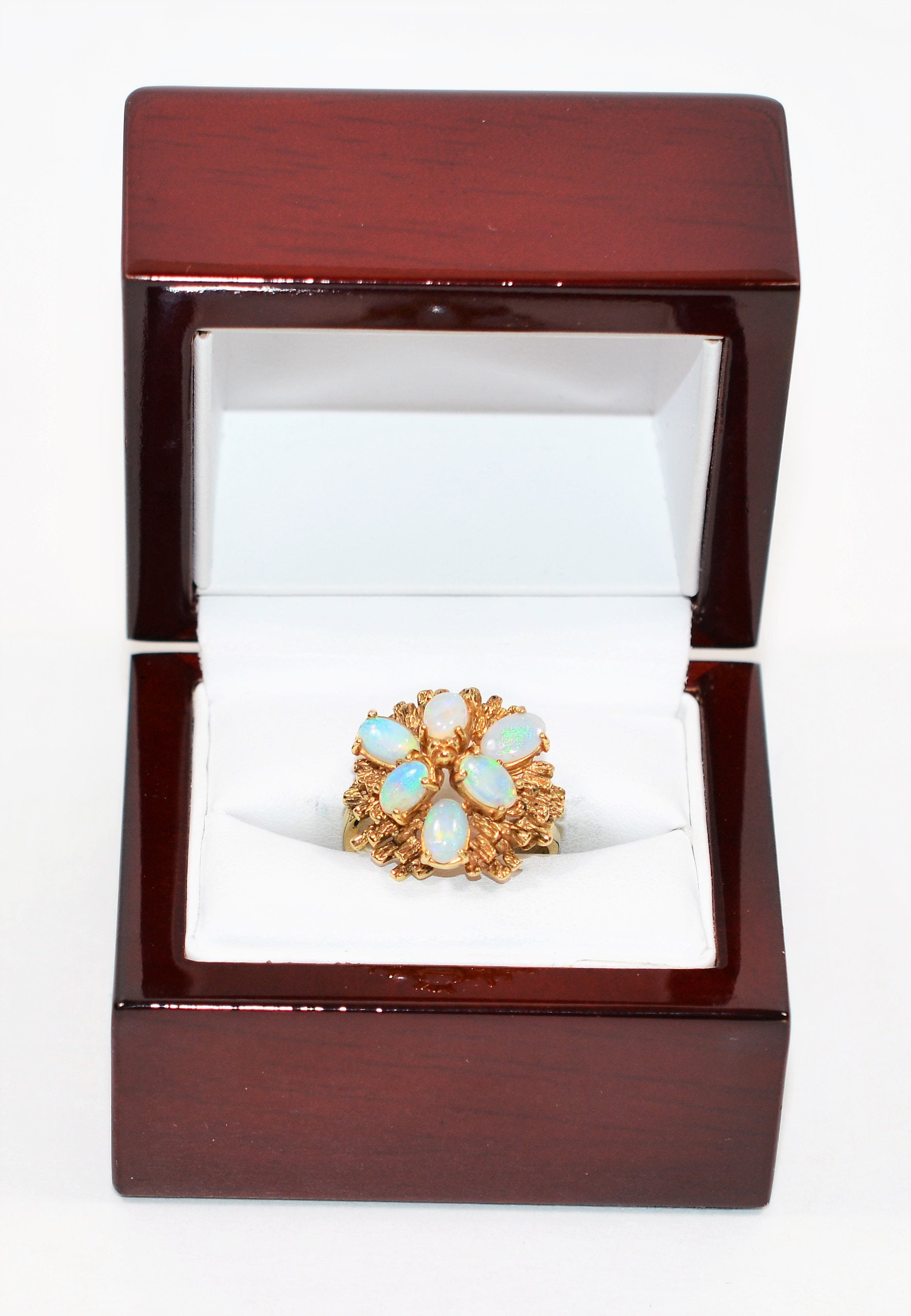 Precious Opal Ring; Ethiopian Welo Opal Ring; Genuine Earth Mined, Natural Welo Opal from Ethiopia in Solid 14K Gold; Statement Ring; Cluster Ring; Birthstone Ring; Estate Jewelry