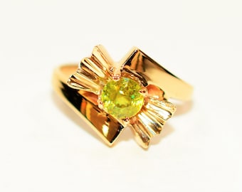 Paraiba Tourmaline Ring: 1.14ct Pear Green Gemstone, 14K Gold Vintage Jewelry